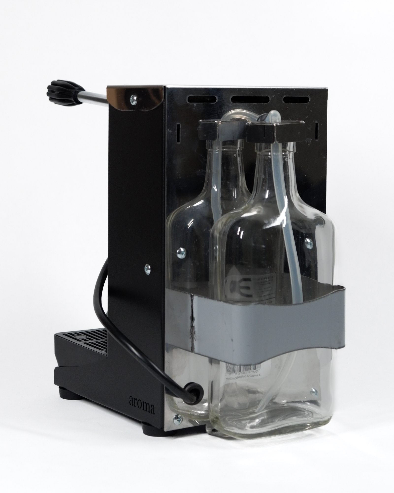 Macchina professionale costruita in acciaio e ottone con ghirba posteriore in vetro. Utilizzata con caffè in cialda carta filtro ESE 44 mm, Tè, tisane, orzo e ginseng. Si presenta in tutta la sua eleganza e comodità in modo da poterla adagiare in ogni postazione che sia casa, ufficio, negozio.